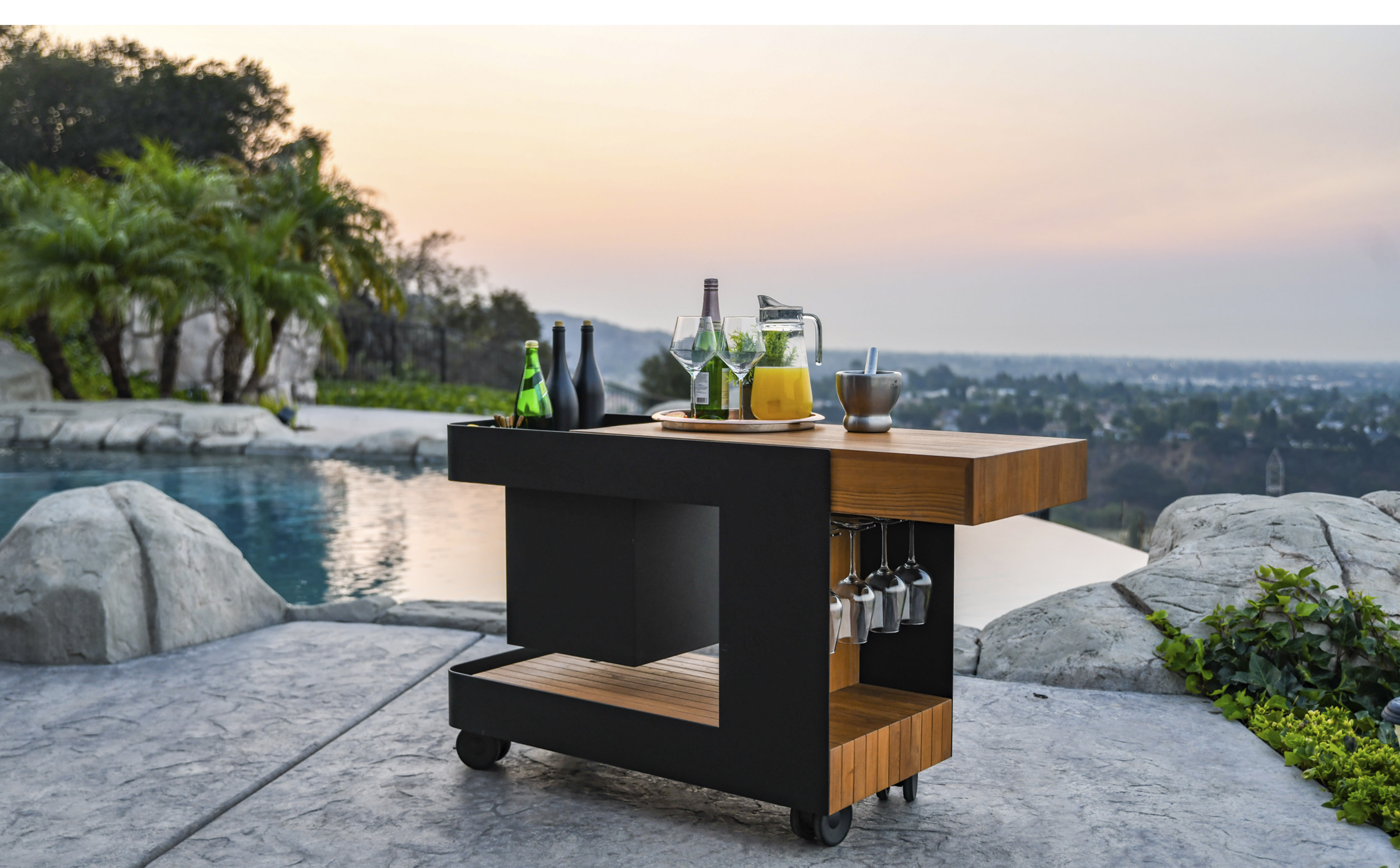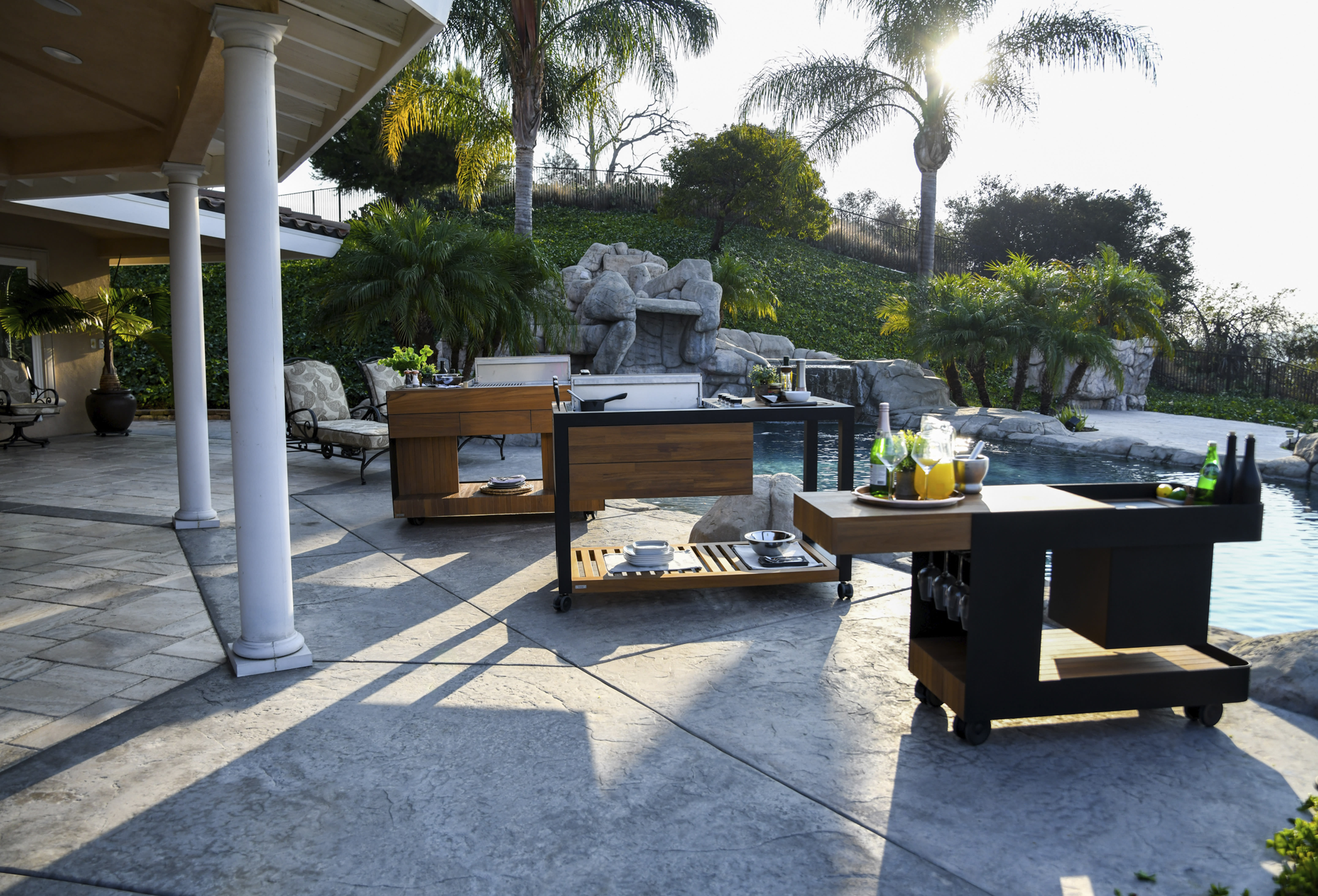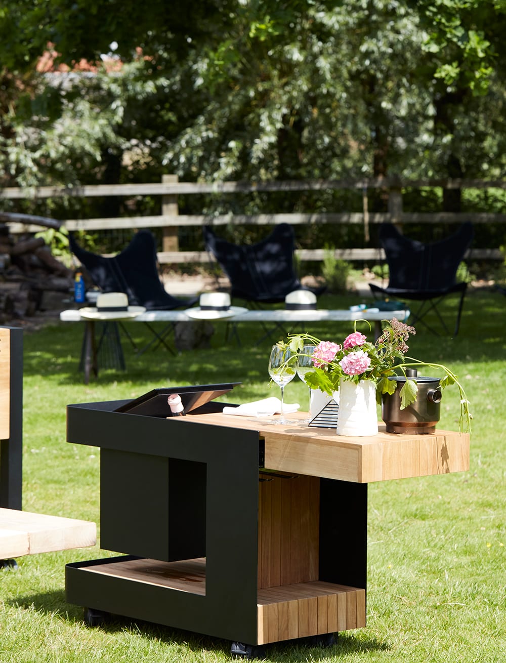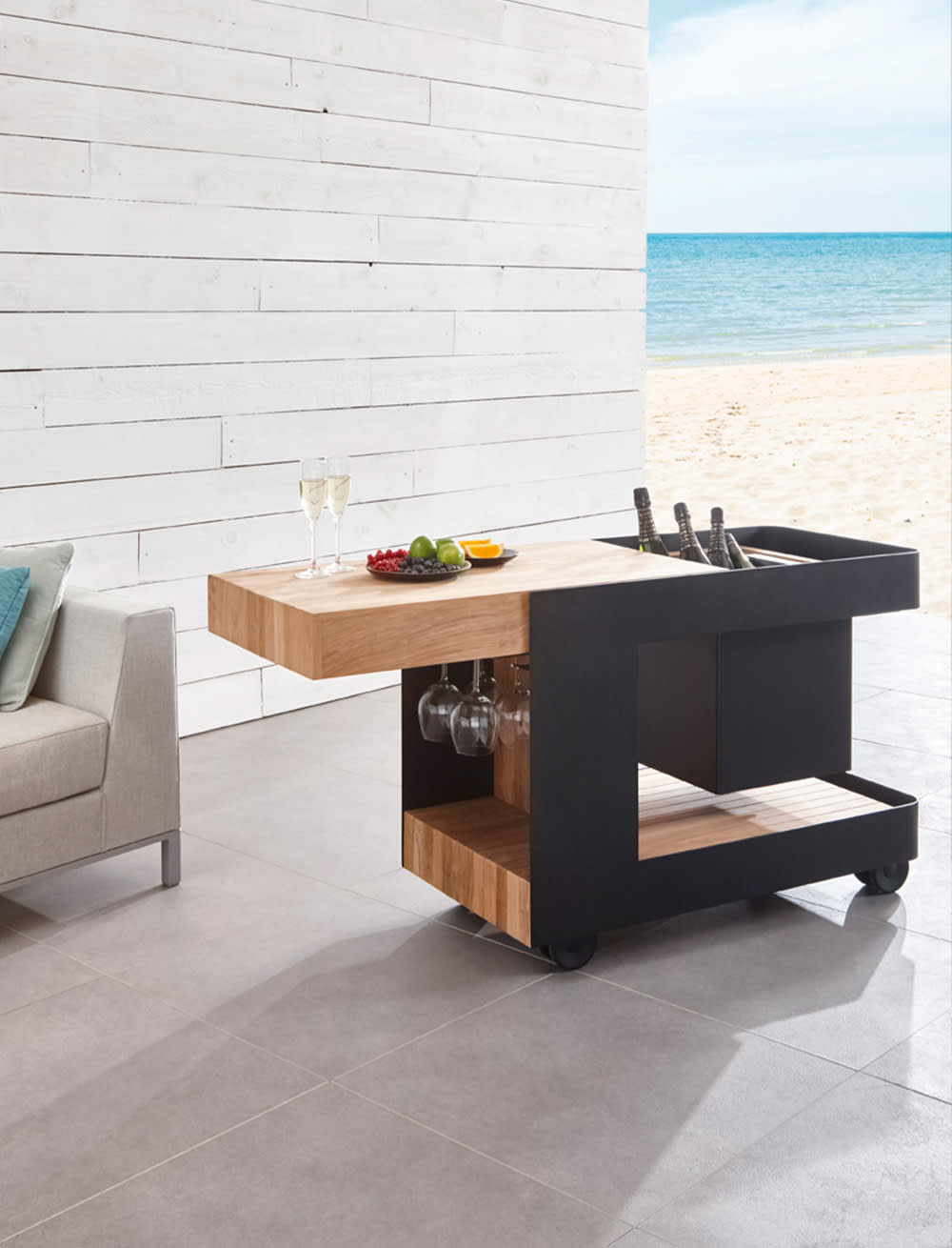 Belgiske Indu+ tilbyder mobile udekøkkener, der giver dig den maksimale følelse af frihed, når det kommer til udendørs madlavning. Fleksible og fritstående moduler i et elegant og tidløst design af massivt teaktræ, nemme at placere og kombinere for en optimal madlavningsoplevelse i haven, uderummet eller på terrassen. I sortimentet finder du blandt andet en gasgrill, induktionsplade, teppanyakistegeplade, arbejdsbord med vask og en drinksvogn med stilrene detaljer i sort eller hvid pulverlakeret aluminium. Vælg mellem færdige udekøkkenløsninger eller skræddersy din egen pakke med funktioner efter dine ønsker.